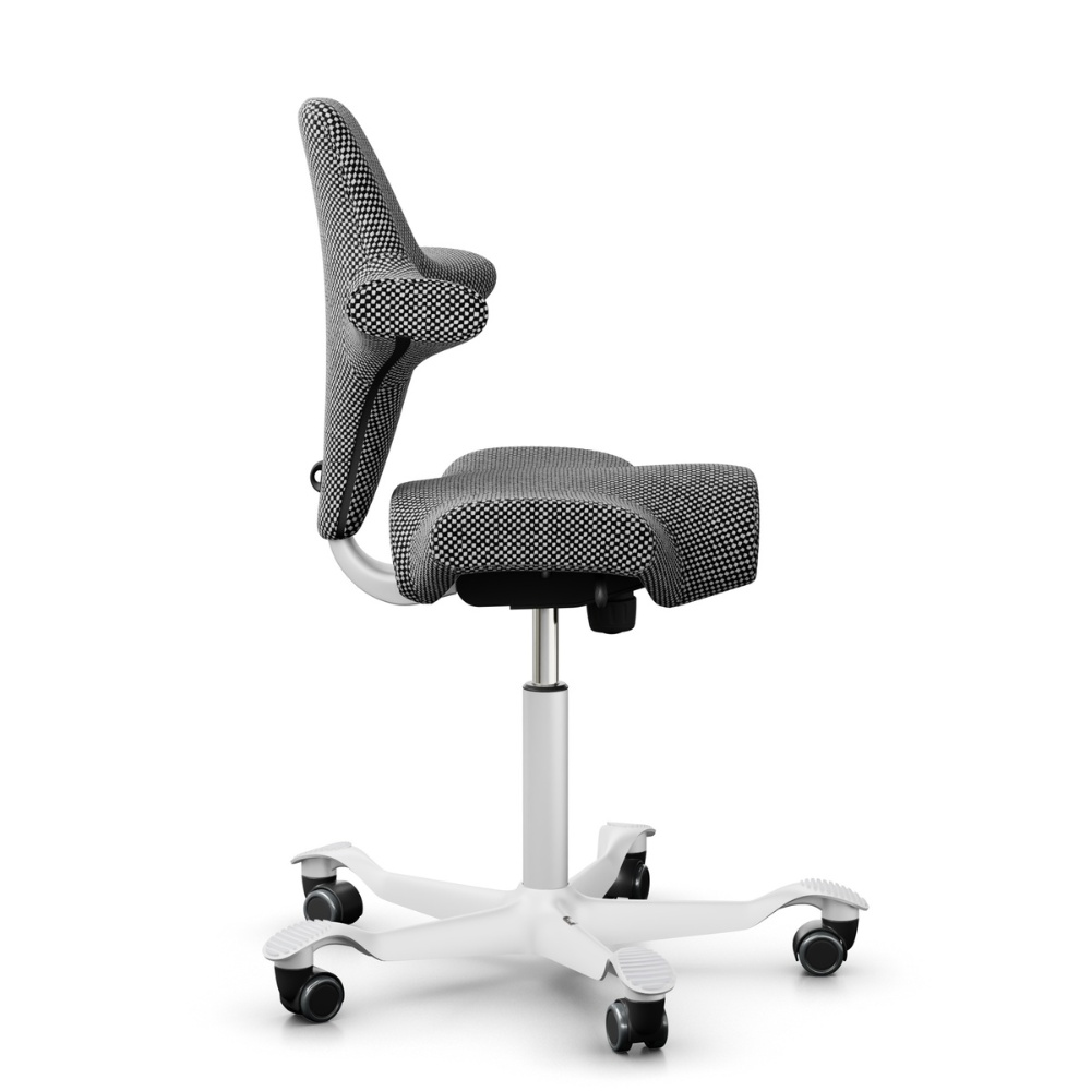 Sie würden begeistert sein, den Capisco an einem höhenverstellbaren Tisch zu erleben: Stehen, Sitzen, Sitzstehen, Stehsitzen, vorwärts, rückwärts oder seitlich. Er macht einfach alles mit, bewegt und hält immer richtig und ausgewogen.