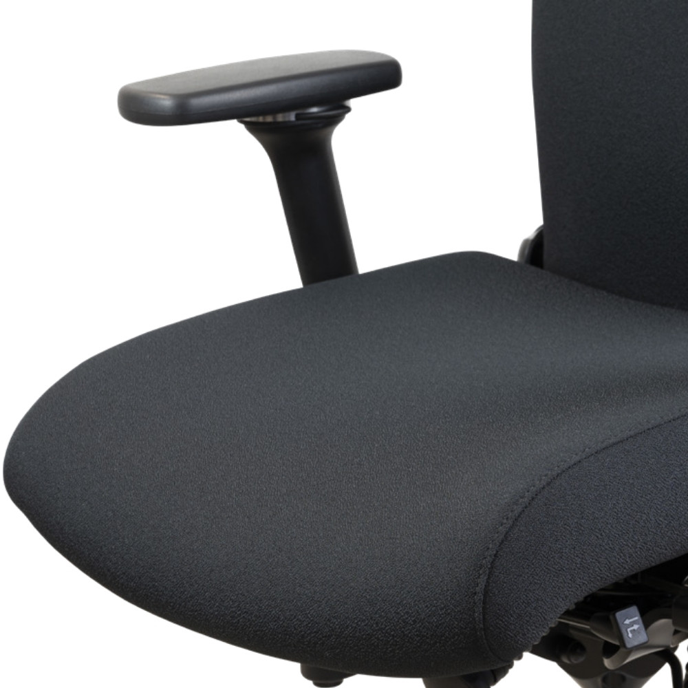 mit VISCOSCHAUMPOLSTERUNG in Sitz und Rücken - 3D-Sitzwerk® mit Synchronmechanik (inkl. Rückendruckeinstellung 35-150kg) - ergonomisch geformte Rückenlehne, 7cm in Höhe, stufenlos bis 34 Grad in Neigung sowie mit Permanentkontakt individuell einstellbar (Lehnenhöhe 60cm) - Lumbalstütze verstellbar - OHNE Beckenbalance - MIT Sitzneigungsverstellung per Gasfeder - Sitztiefenverstellung per Schiebeschlitten (45-51cm) - Sitzhöhenverstellung stufenlos - MIT Nackenstütze 3S mit 3D-Gelenk - Armlehnen 4F - 4fach verstellbar (Drucktaste) Bezug: Era CSE14 schwarz Armlehnen: Multifunktion 4F (Drucktaste) - Auflage eckig PUR weich schwarz, alu poliert Fußkreuz: Alu poliert 68 cm Gasfeder: 1 (42-52cm) Rollen: Chrom, UNIVERSAL - weich, 6cm