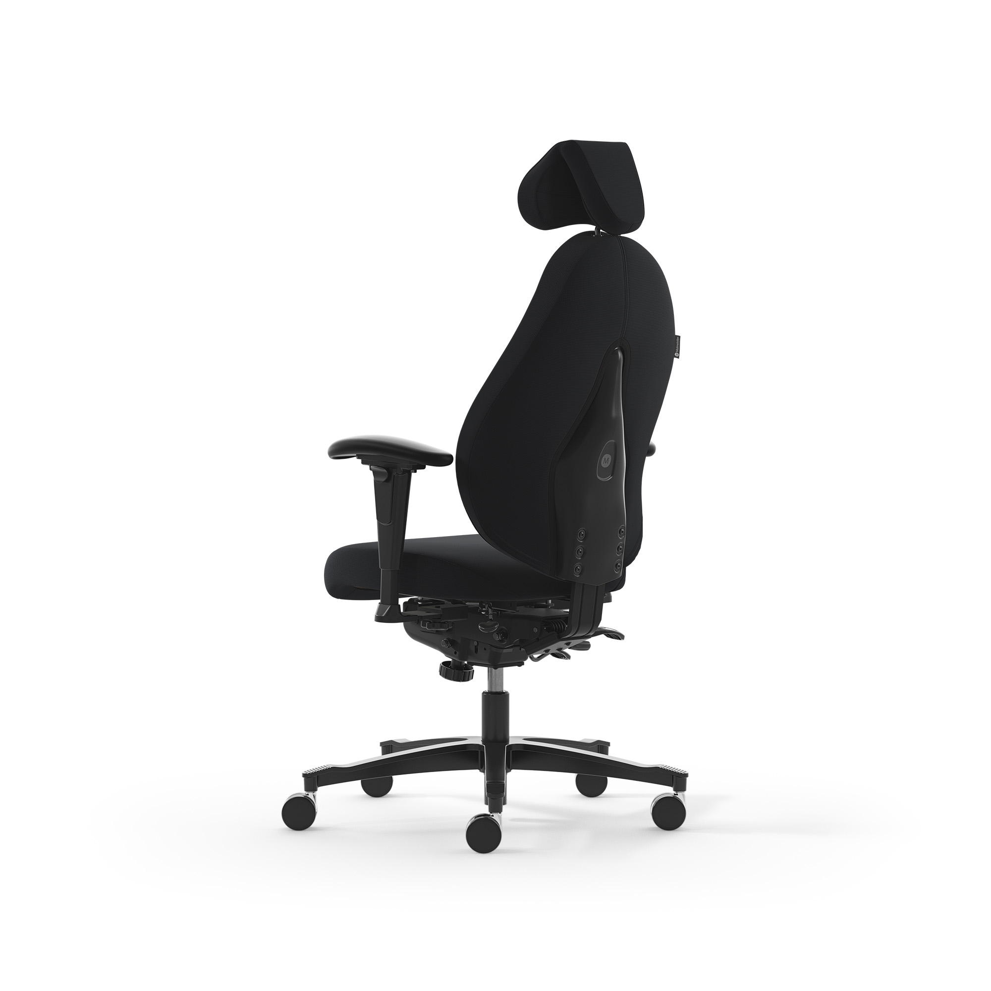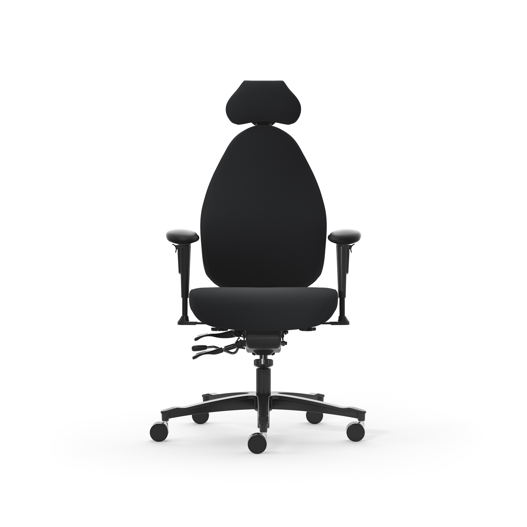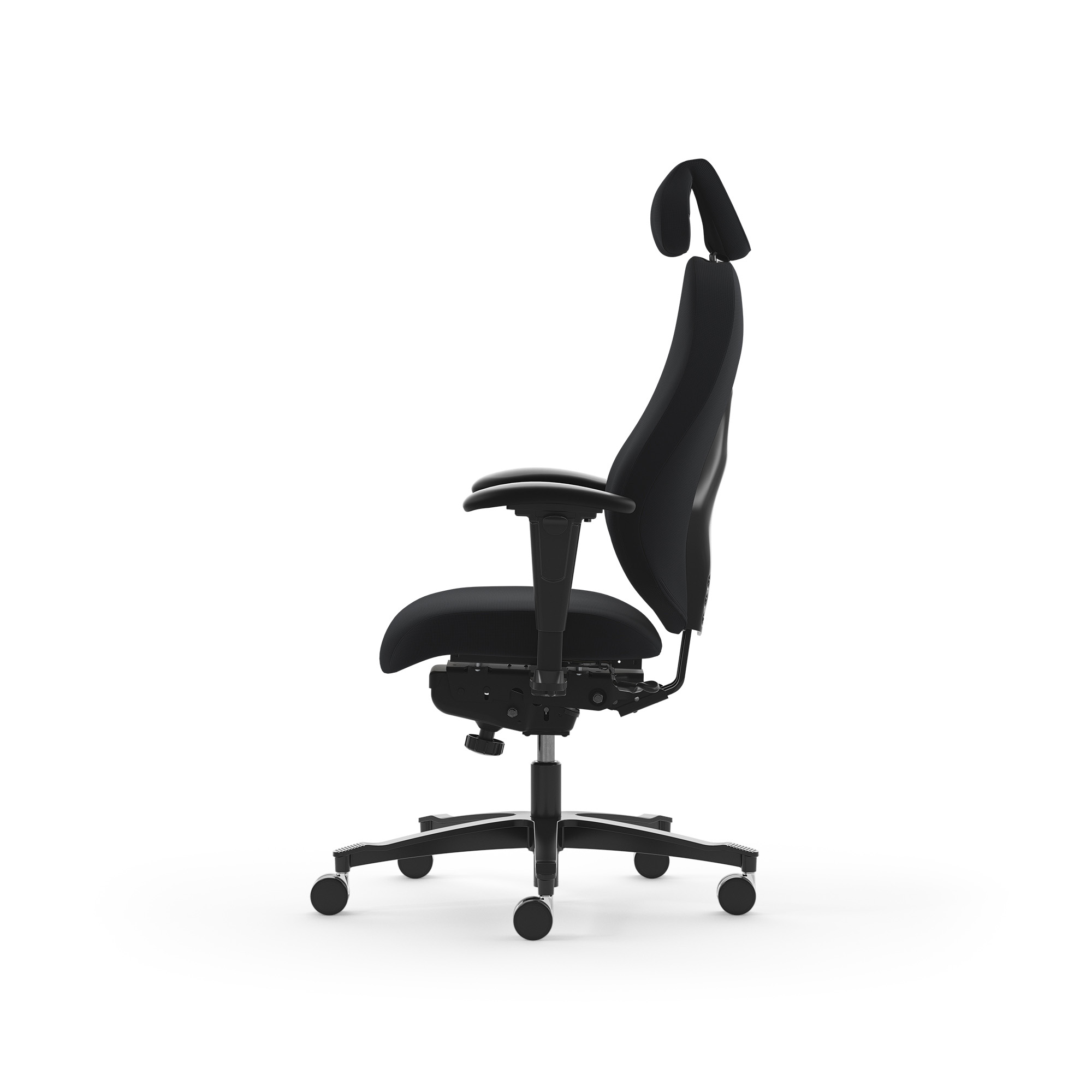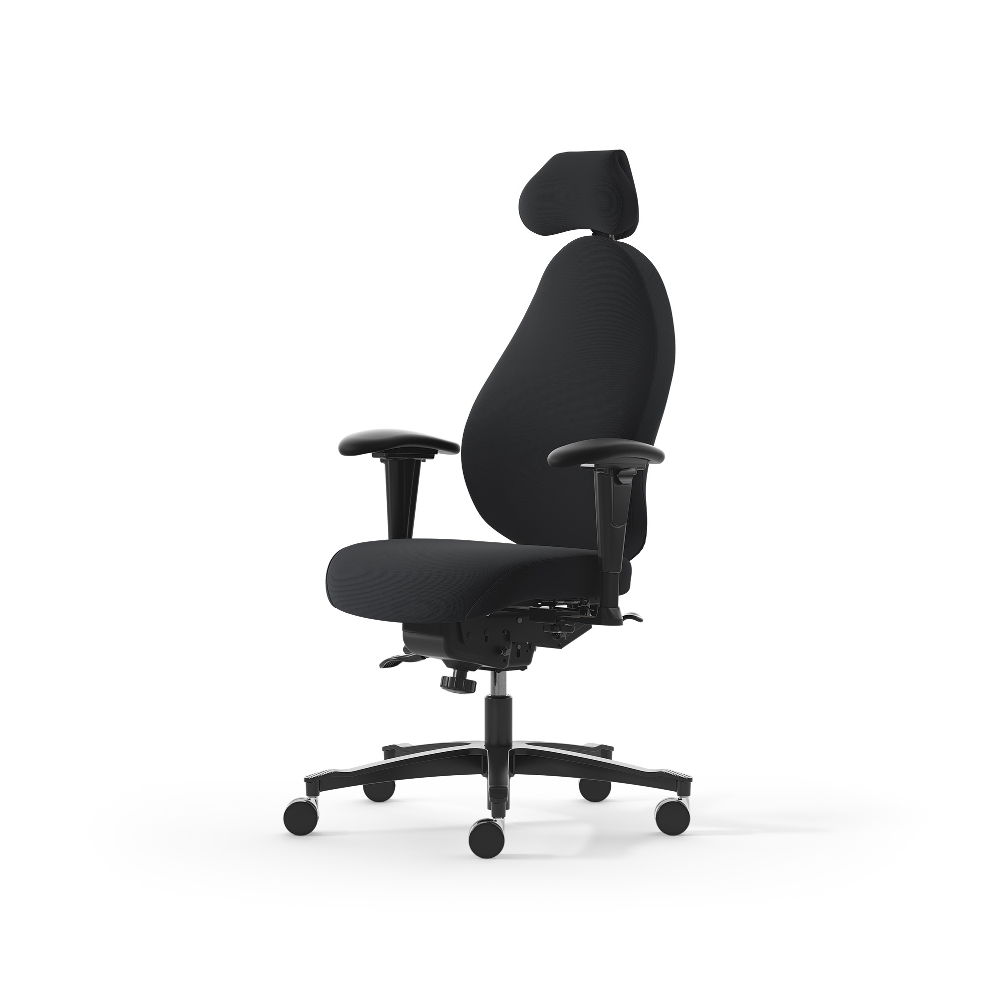 spezial Polsterung und ergonomischen Rücken - Sitz mit Federkern Pascal by DUX zur besonders guten Druckverteilung - Sitztiefeneinstellung - Sitzneigung fließend +17°-- -4° - Hohe-Rückenlehne ergonomisch geformt mit "ZenXit" Polsterung - perfekte, elastische Anpassung - Rückenlehnenwinkel einstellbar - mit Beckenstütze - Mit Nackenstütze stufenlos, individuell anpassbar in 3 Ebenen - ErgoFlex-Armlehnen in Höhe, Breite, Neigung und Tiefe einstellbar Bezug: Ziernaht: schwarz Armlehne: ErgoFlex Fußkreuz: Aluminium schwarz Rollen: 6 cm, chrom, weich für Hartboden Gasfeder: 2C, 45-56cm