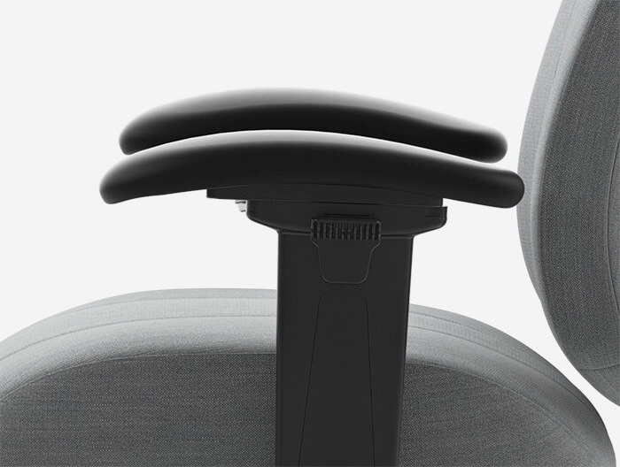 Die Einstellung der Armlehnen wird von Ihrer Oberarmlänge und Ihrer Schultergürtelbreite bestimmt. Die Höhe ist richtig, wenn die Schultern weder nach oben geschoben werden noch nach unten hängen. Die Breite ist richtig, wenn Sie Ihre Oberarme ohne Engegefühl und ohne sie abzuspreizen nahe am Rumpf bewegen können.
