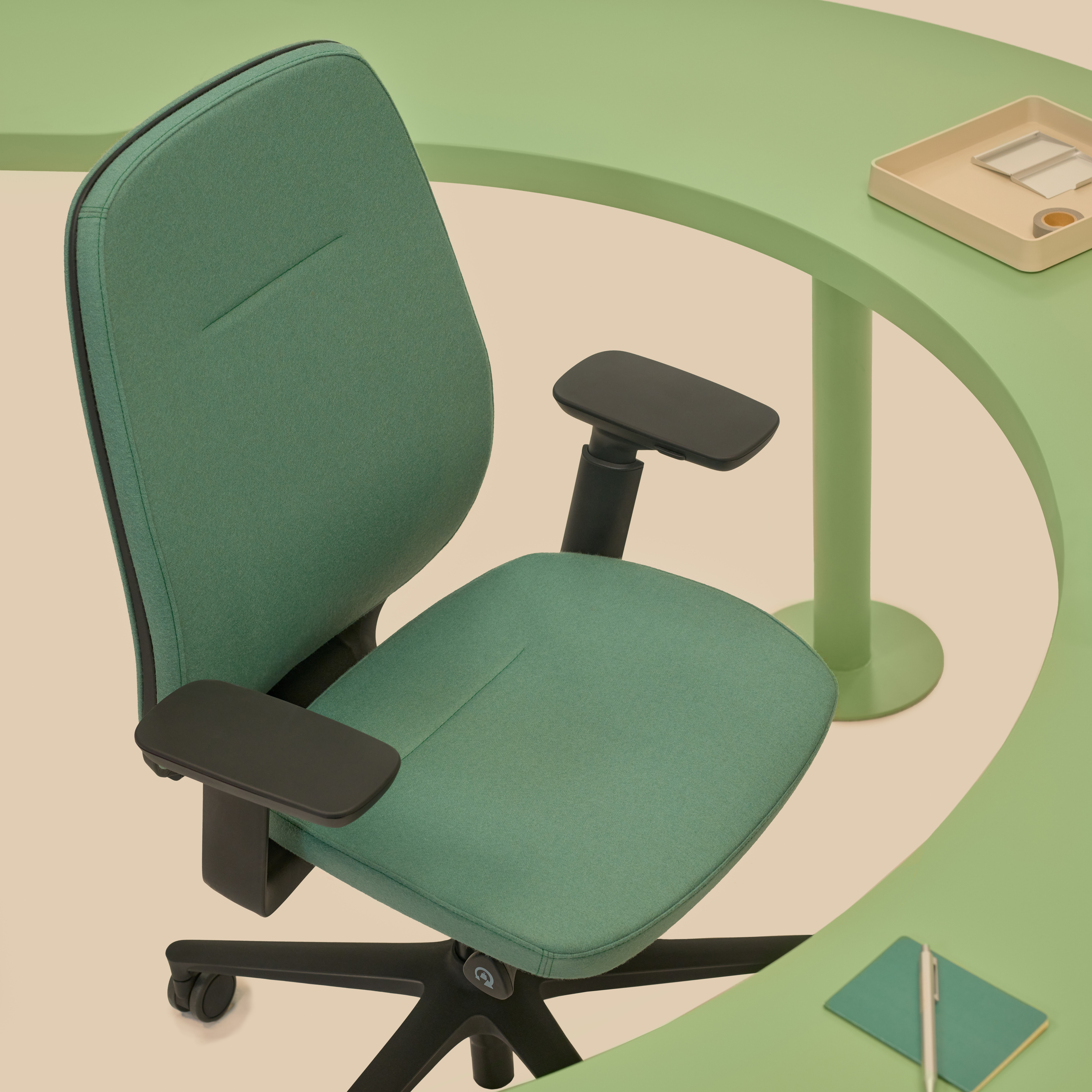 Das Herzstück des Pace 100SFL MAX ist die Synchro SFL MAX-Mechanik. Sie bietet einen Bewegungsbereich der Rückenlehne von 23° und des Sitzes von 11°. Zusätzlich verfügt der Stuhl über eine Sitztiefenverstellung von 75 mm, um sich an Ihre Beinlänge anzupassen. Die Mechanik lässt sich in 5 Positionen arretieren. Der Sitz besteht aus einem langlebigen Polyurethan-Formschaum mit einer Dichte von 65 kg/m³. Die Rückenlehne ist vollständig gepolstert und nutzt im inneren Rahmen Polypropylen mit 80% recyceltem Material. Optional sorgt eine höhen- und tiefenverstellbare Lordosenstütze für zusätzlichen Halt im Lendenwirbelbereich.