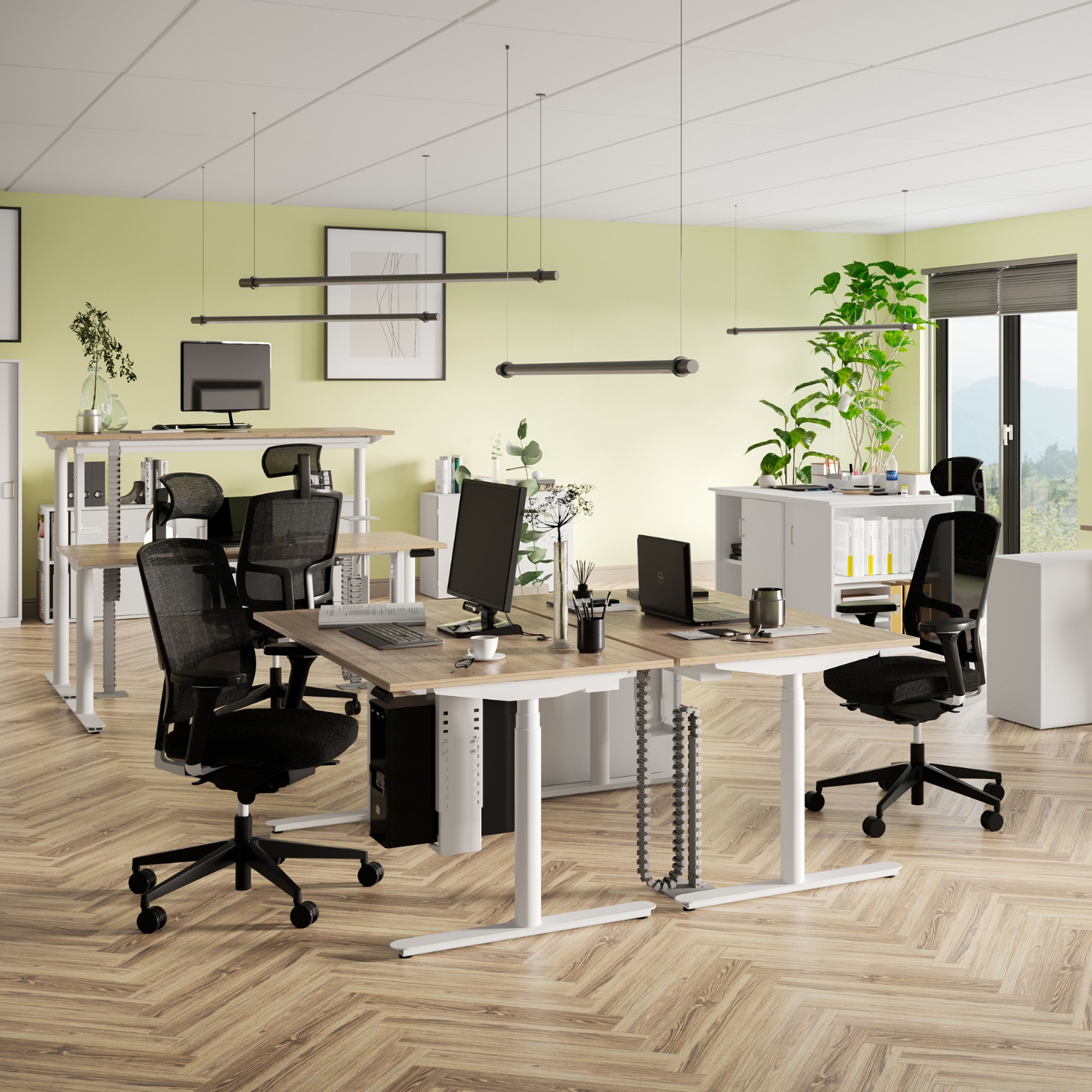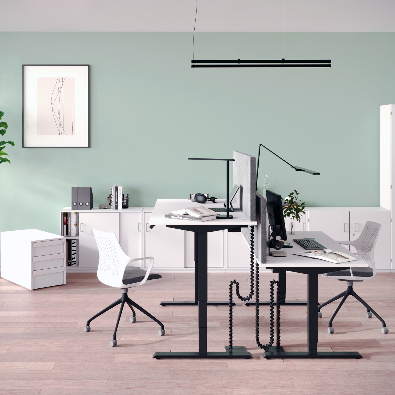 Der SPINE 4 von LEUWICO ist ein elektrisch höhenverstellbarer Schreibtisch mit klarer Linienführung und vielseitiger Ausstattung. Zwei leise Motoren ermöglichen eine stufenlose Verstellung von 64,5 bis 130 cm bei einer Geschwindigkeit von bis zu 60 mm/s, inklusive Softstart, Softstop und SafetyStop-Kollisionsschutz.