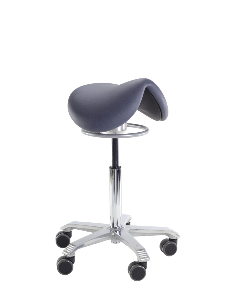 Der Sattelsitz bringt Ihre Wirbelsäule in eine Position die weniger ermüdet. Becken und Wirbelsäule bleiben im Gleichgewicht. Perfekt für Hygienearbeitsplätze.